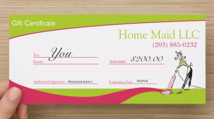 Our cleaning services gift certificates can be used towards any of our services, such as ongoing maid service, one-time service, spring or fall cleaning, and more. Contact us today for more details on purchasing your Home Maid gift certificates!
